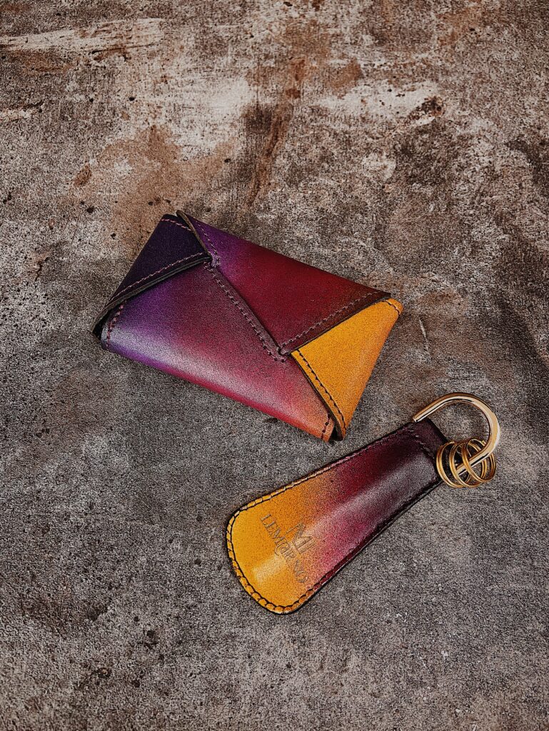 パティーヌ仕上げ、オールハンドソーイングといった熟練した職人によるオリジナル革製品。 常に携帯できるようにをコンセプトにしたスタイリッシュなキーホルダー型の高級感ある オリジナルシューホーン、日本の伝統文化である折り紙の発想から、留め具などの金具や 縫製を一切使用せずに、一枚革を折り重ねてできる黄金比デザインのカードホルダー。 全ての商品にサービスで刻印名入れ可能です。